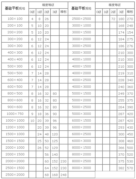 检测平板/检测平台精度:按国家标准计量检定规程执行,分别为0,1,2,3级四个级别。