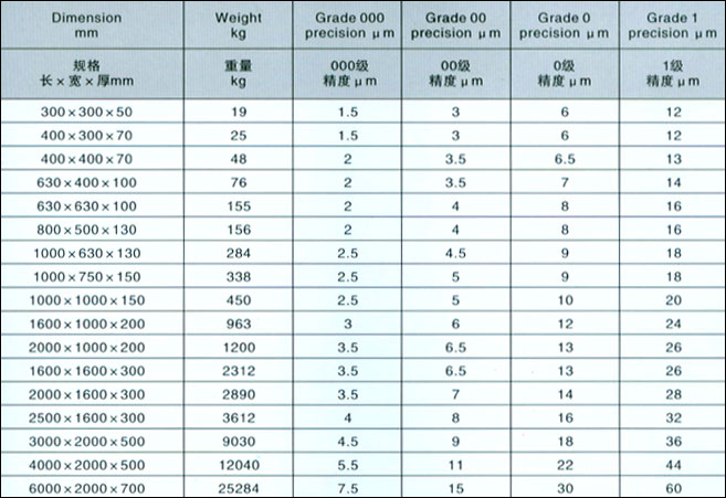 装配平板/装配平台精度:按国家标准计量检定规程执行,分别为0、1、2、3四个等级。